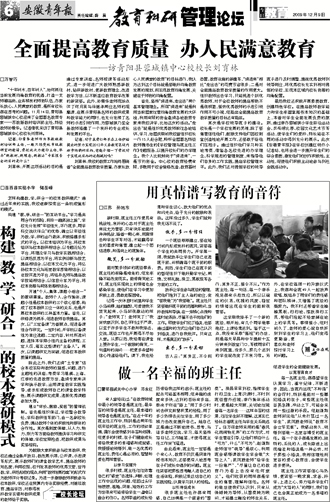 全面提高教育质量 办人民满意教育——访青阳县蓉城镇中心校校长刘育林 构建“教、学、研合一”的校本教研模式 用真情谱写教育的音符 做一名幸福的班主任