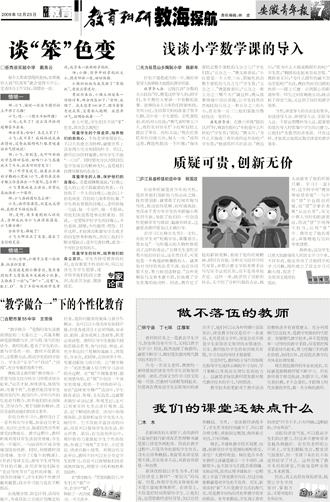 谈“笨”色变 浅谈小学数学课的导入 质疑可贵,创新无价 “教学做合一”下的个性化教育 做不落伍的教师 我们的课堂还缺点什么