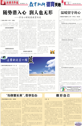 随势潜入心 润人也无形——学生心理健康教育例谈 这里的天空一样蓝 温暖留守的心 “叫你家长来”,伤学生心 做好自己