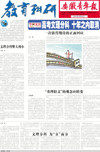 新闻纵横 一次值得期待的正面回应 文理分科弊大利小 “重理轻文”的观念应转变 文理分科 为“分”而分