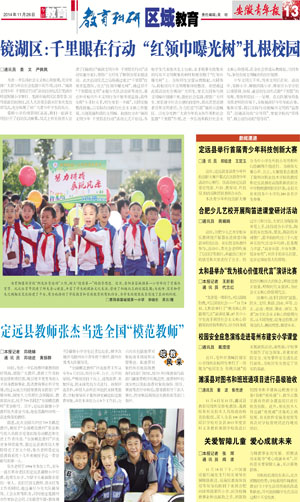 镜湖区:千里眼在行动 “红领巾曝光树”扎根校园 图片新闻 皖教风采 定远县教师张杰当选全国“模范教师” 新闻速递 定远县举行首届青少年科技创新大赛 合肥少儿艺校开展陶笛进课堂研讨活动 太和县举办“我为核心价值观代言”演讲比赛 校园安全应急演练走进亳州市建安小学课堂 濉溪县对图书和班班通项目进行县级验收 关爱智障儿童 爱心成就未来