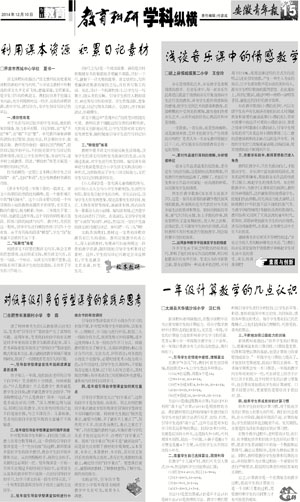 校本教研 利用课本资源 积累日记素材 教学反思 对低年级引导自学型课堂的实践与思考 素质与创新 浅谈音乐课中的情感教学 教育案例 一年级计算教学的几点认识