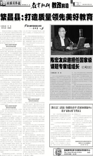 深化教育领域综合改革——实践篇 繁昌县:打造质量领先美好教育 协同资讯 陈宏友应邀担任国家级课题专家组组长 《教育文汇》文化版 基础教育改革与发展协同创新中心 联办“家校心桥”有奖征文