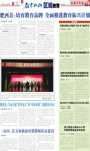 肥西县:培育教育品牌 全面推进教育振兴计划 濉溪县:全面开展“世界水日”和“中国水周”主题教育活动 三山区:着力加强新时期教师队伍建设 新闻速递