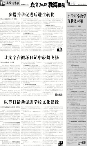 多措并举促进后进生转化 让文字在循环日记中轻舞飞扬 以节日活动促进学校文化建设 小学写字教学现状及对策