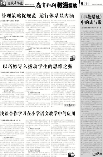 管理策略促规范 运行体系显内涵 以巧妙导入拨动学生的思维之弦 浅谈合作学习在小学语文教学中的应用 《半截蜡烛》中的成与败