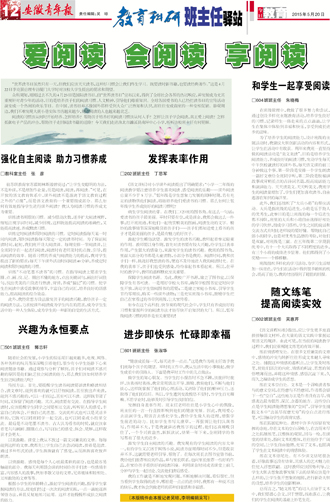 爱阅读 会阅读 享阅读 强化自主阅读 助力习惯养成 发挥表率作用 兴趣为永恒要点 进步即快乐 忙碌即幸福 和学生一起享受阅读 随文练笔提高阅读实效