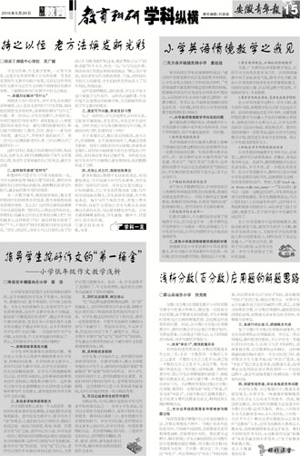 持之以恒 老方法焕发新光彩 指导学生挖好作文的“第一桶金” ——小学低年级作文教学浅析 小学英语情境教学之我见 浅析分数(百分数)应用题的解题思路