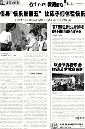 倡导“快乐星期五” 让孩子们体验快乐 芜湖市师范附属小学减轻学生课业负担改革 “美育新课程、新教法、新教学模式骨干教师高级研修班”开班 联合举办音乐会推动艺术教育创新