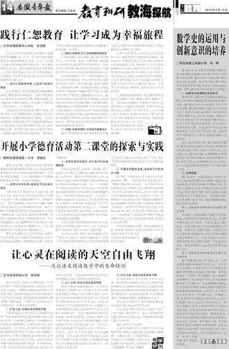 践行仁恕教育 让学习成为幸福旅程 开展小学德育活动第二课堂的探索与实践 让心灵在阅读的天空自由飞翔 ——浅谈语文阅读教学中的生命情怀 数学史的运用与创新意识的培养