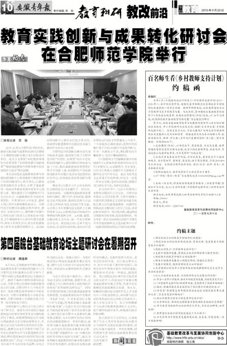 教育实践创新与成果转化研讨会在合肥师范学院举行 第四届皖台基础教育论坛主题研讨会在暑期召开 百名师生看《乡村教师支持计划》 约 稿 函