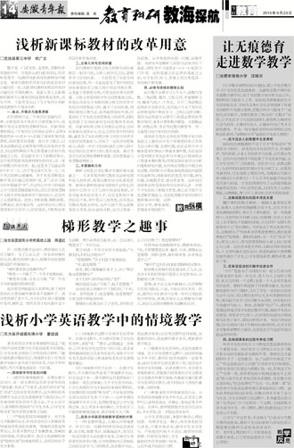 浅析新课标教材的改革用意 梯形教学之趣事 浅析小学英语教学中的情境教学 让无痕德育走进数学教学