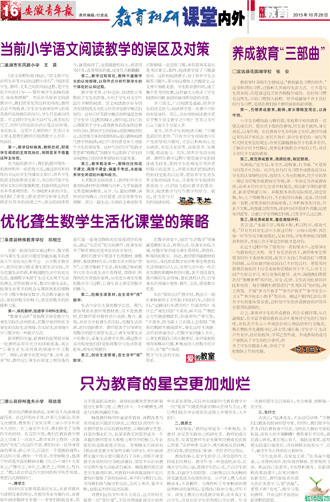 当前小学语文阅读教学的误区及对策 优化聋生数学生活化课堂的策略 只为教育的星空更加灿烂 养成教育“三部曲”