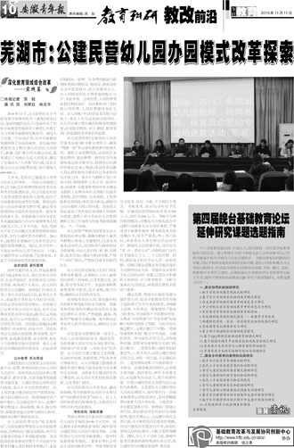 芜湖市:公建民营幼儿园办园模式改革探索 深化教育领域综合改革 ——实践篇 第四届皖台基础教育论坛 延伸研究课题选题指南