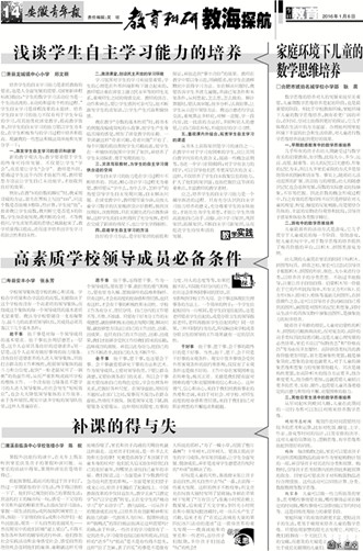 浅谈学生自主学习能力的培养 高素质学校领导成员必备条件 补课的得与失 家庭环境下儿童的数学思维培养