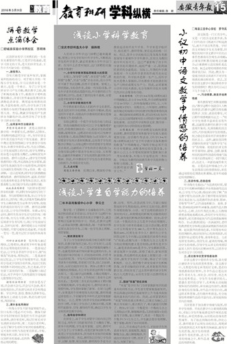 教学心得|拼音教学点滴体会 学科一见|浅谈小学科学教育 讲台三味|浅谈小学生自学能力的培养 校本案例|小议初中语文教学中情感的培养