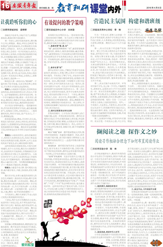 爱的教室|让我聆听你们的心 教育感怀|有效提问的教学策略 师生之间|营造民主氛围 构建和谐班级 教学研究|撷阅读之趣 探作文之妙
