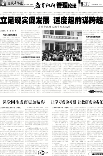 立足现实促发展 适度超前谋跨越——亳州市谯城区教育发展纪实 课堂因生成而更加精彩 让学习成为习惯 让教研成为责任