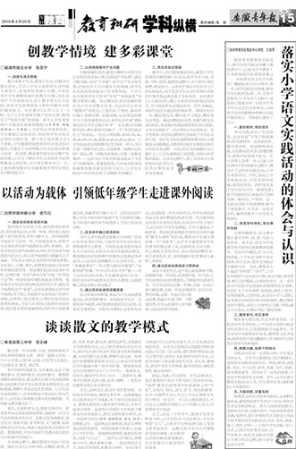 创教学情境 建多彩课堂 以活动为载体 引领低年级学生走进课外阅读 谈谈散文的教学模式 落实小学语文实践活动的体会与认识