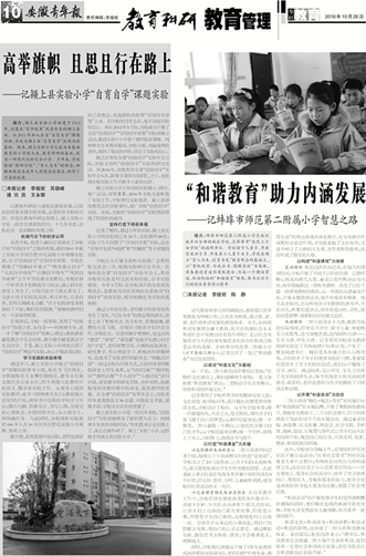 高举旗帜 且思且行在路上——记颍上县实验小学“自育自学”课题实验 “和谐教育”助力内涵发展——记蚌埠市师范第二附属小学智慧之路