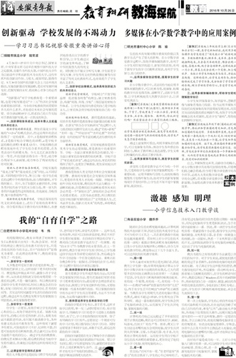 创新驱动 学校发展的不竭动力——学习习总书记视察安徽重要讲话心得 多媒体在小学数学教学中的应用案例 我的“自育自学”之路 激趣 感知 明理——小学信息技术入门教学谈