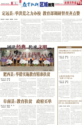 定远县:举洪荒之力办校 教育部调研督查齐点赞 诵读经典 传承文明 肥西县:举措实施教育精准扶贫 阜南县:教育扶贫 政府买单 新闻速递