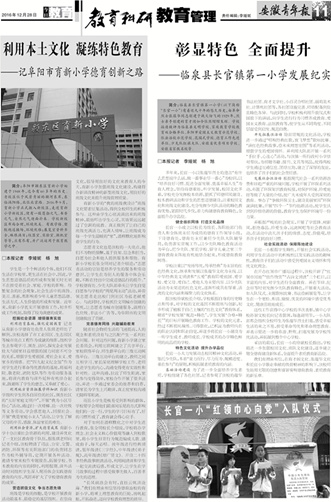 利用本土文化 凝练特色教育—记阜阳市育新小学德育创新之路 彰显特色 全面提升—临泉县长官镇第一小学发展纪实