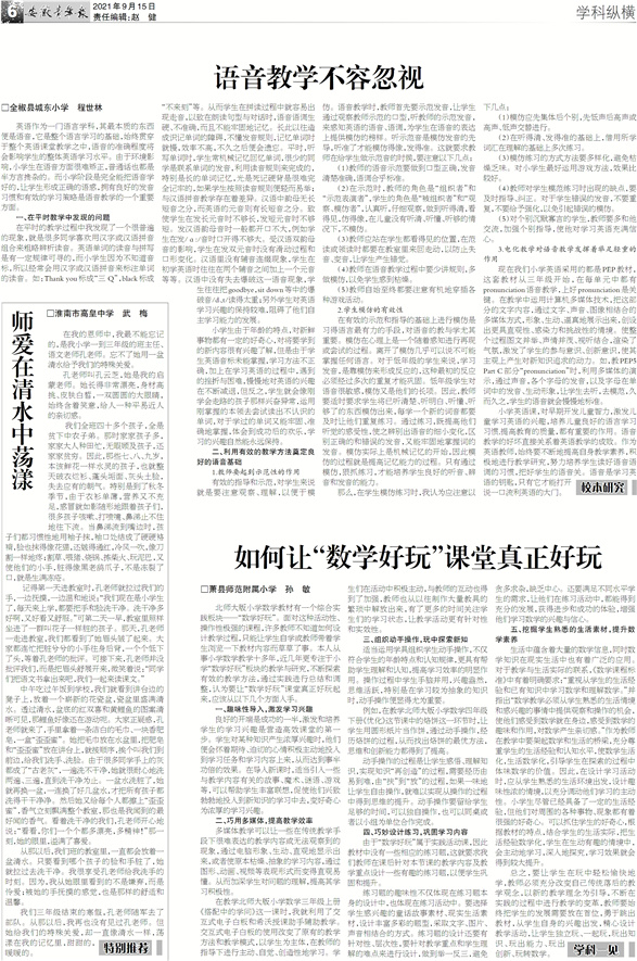 语音教学不容忽视 师爱在清水中荡漾 如何让“数学好玩”课堂真正好玩