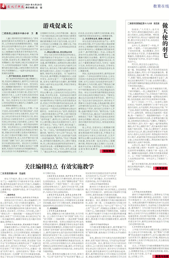 游戏促成长 做天使的羽毛 关注编排特点 有效实施教学