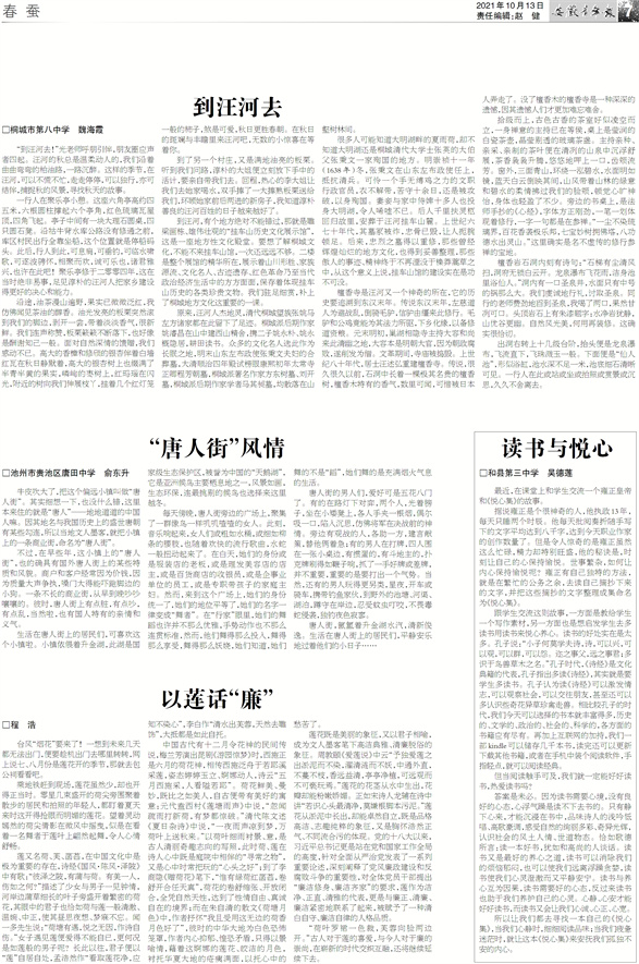 到汪河去 “唐人街”风情 以莲话“廉” 读书与悦心