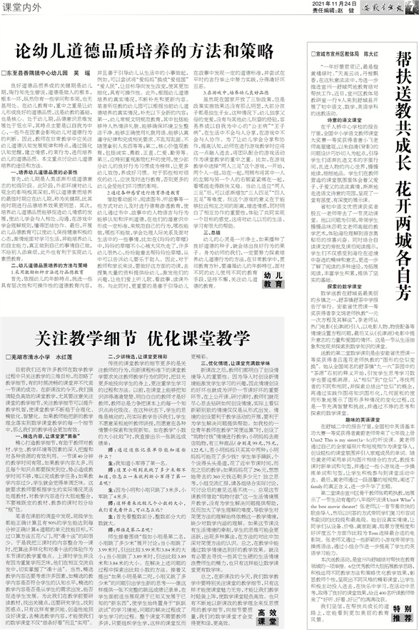 论幼儿道德品质培养的方法和策略 关注教学细节 优化课堂教学 帮扶送教共成长 花开两城各自芳