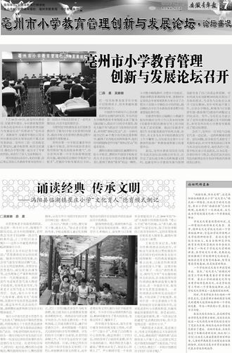 亳州市小学教育管理 创新与发展论坛召开 论坛现场直击 诵读经典 传承文明