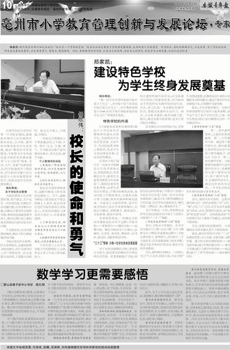 校长的使命和勇气 建设特色学校 为学生终身发展奠基 数学学习更需要感悟