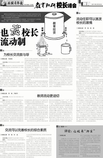 流动任职可以激发校长的激情 链接——评论:让校长“挪窝” 交流可以完善校长的综合素质 教师流动更迫切 为校长交流鼓与呼