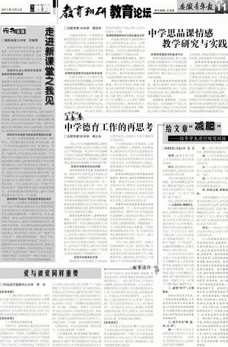 走进新课堂之我见 爱与被爱同样重要 中学思品课情感 教学研究与实践 中学德育工作的再思考 给文章“减肥”