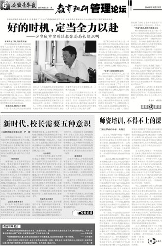 如果没有热情和能力,没有开放的思想和超前的理念作支撑,一个人难以不断超越自我。校长的思想理念往往是影响学校文化形成的重要因素,所以作为学校的直接管理者,校长更应该积极开阔自己的眼界,转变提升自己的思想理念。 |