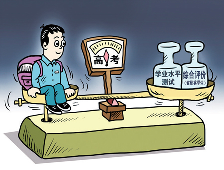 以分数为选拔人才标准的高考制度虽屡遭国民非议,但人们也习以为常了。不论是从专家学者的观点判断,还是从中国教育的现状分析,在没有找到更合理、更公平的解决办法之前,以分数为选材依据的高考还是最为公平实用的。近年来,高考改革的步伐一刻也没有停息,并取得了一定的成果,人们对高考改革充满期待。随着国民对教育的重视,高考的巨大功利性带来了“全国总动员”——形成具有中国特色的每年一度的国考。 |