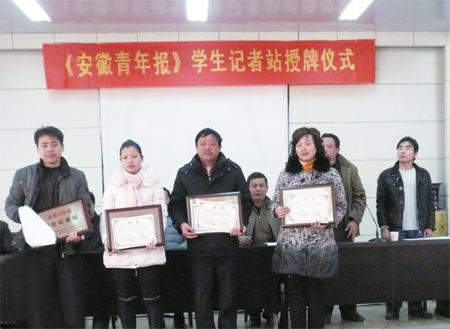 近日,《安徽青年报》阜南县学生记者站授牌仪式在阜南县第一小学举行,阜南县县委宣传部副部长季传光、县委宣传科科长刘龙、安徽青年报社驻阜阳市记者站站长杨益军,阜南县县城四所学校的校长、辅导员老师和小记者们参加授牌仪式。