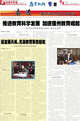 近日,本报记者专程采访了宿州市教育局党组书记、局长王共伟,在谈到宿州教育的发展时,王共伟满怀自信地给我们讲述了宿州教育这一年来所取得的成就。