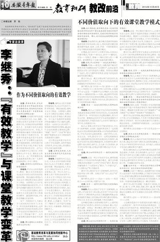 记者:李教授您好,首先非常感谢您在百忙中抽出时间接受本报的采访,您能跟我们说说什么是有效教学?目前有效教学的研究有哪些方面? |