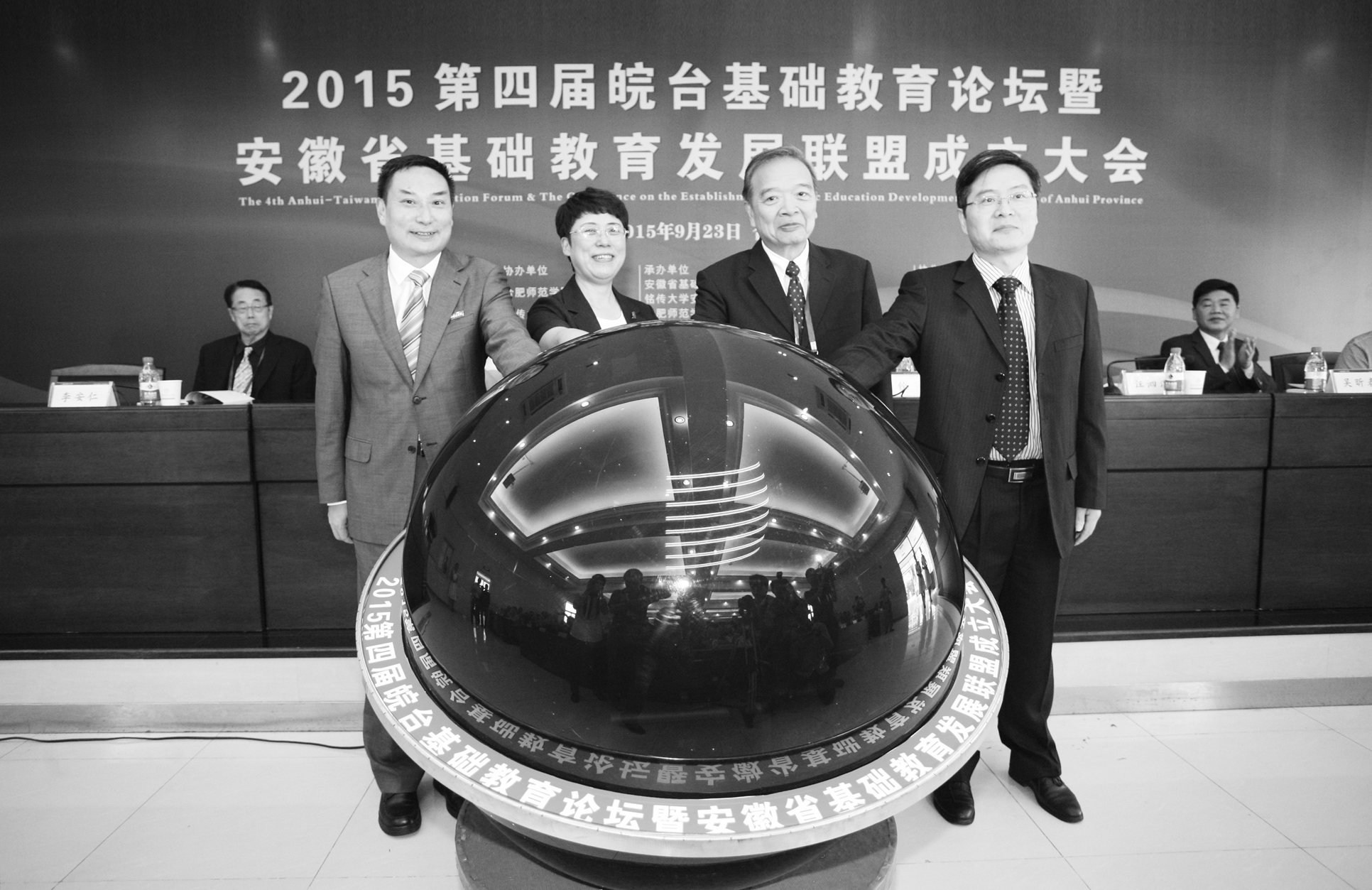 开幕式上,安徽省教育厅副厅长金燕、安徽省台湾事务办公室副主任汪泗淇、铭传大学校长李铨和合肥师范学院副校长李进华共同为“安徽省基础教育发展联盟”启幕,宣布联盟成立。同时,通过了《安徽省基础教育发展联盟章程》、联盟理事会和秘书处组成人员建议名单,形成了全省100多所中小学、幼儿园和教育研究机构、地方政府教育主管部门为成员单位的初步架构。全体与会领导与专家合影留念。