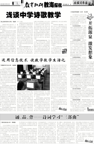 诗歌教学是语文教学的一个重要组成部分,如何教好中学诗歌,是每位中学语文教师必须解决的问题之一。 |