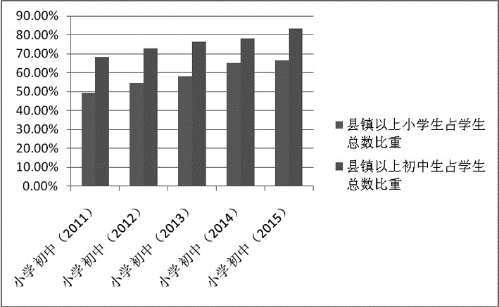 图:全省县镇以上学校就读的义务教育阶段学生占学生总数的比重(2011~2015)