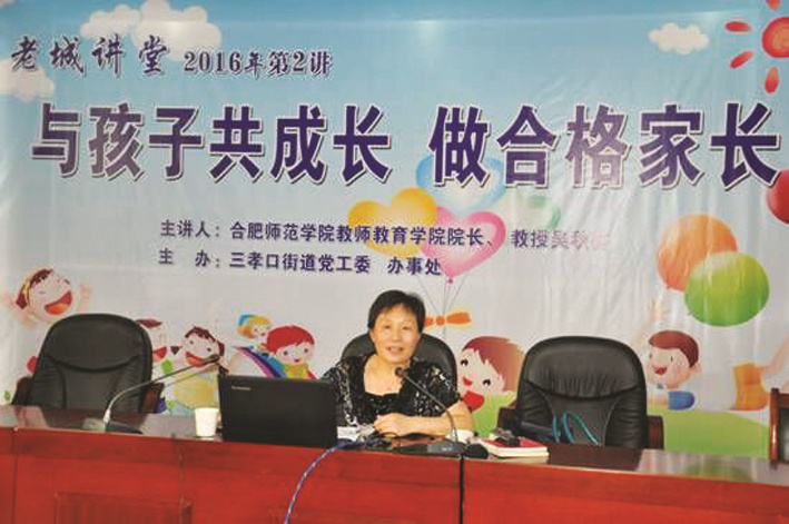 近日,题为“与孩子共成长,做合格家长”的专题讲座在合肥市三孝口街道办事处展开,作为本次讲堂的主讲人——合肥师范学院教师教育学院院长、教授吴秋芬给大家上了一堂生动的“家长课”。