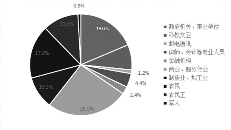 图1 安徽省各地市参与问卷调查的家长职业情况