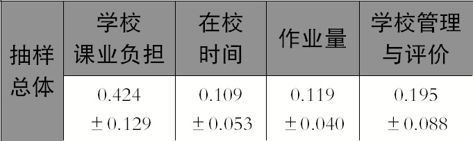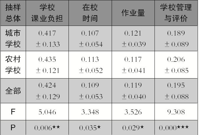 农村学校学生课业负担整体得分(0.435分)高于城市课业负担整体得分(0.417分),但单看作业量指标仍是城市学校学生课业负担指数略高。