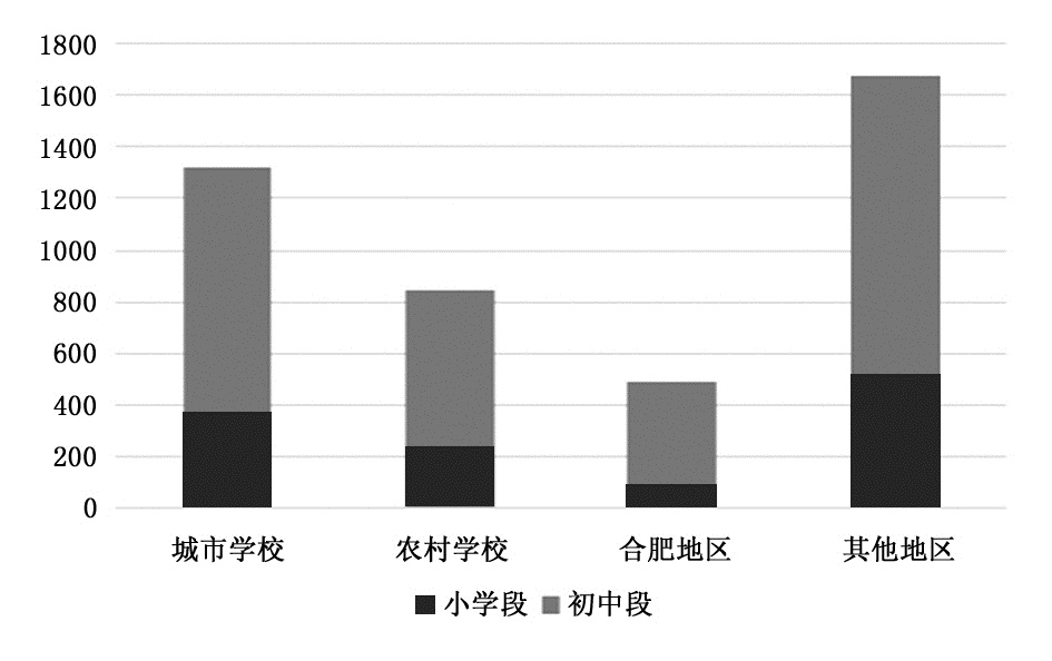 自2016年11月15日至2016年12月25日,基础教育协同创新评测团队主要通过网络问卷的调查途径采集数据,辅以教师、学生及家长的访谈方式印证。本次调查面向学生家长共发放6492份网络问卷,其中,面向小学段学生家长共发放网络问卷4659份;面向初中段学生家长共发放网络问卷1833份,有效问卷率为100%。根据学校所在区域,分别对小学段和初中段问卷进行城市学校和农村学校、合肥地区和其他地区比较,其中,农村学校问卷2535份,城市学校问卷3957份;合肥地区问卷1458份,其他地区问卷5034份(见图1)。
