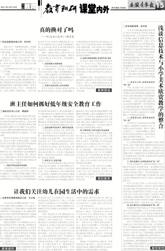 教学研究 浅谈信息技术与小学美术欣赏教学的整合 □东至县教育局 朱月祥 小学美术教育就是通过美术欣赏,培养学生感受美、欣赏美、体验美和创造美的能力,美术欣赏对于陶冶学生情操,启迪学生智慧,促进学生全面发展,具有重要作用。目前,小学专业美术老师配备不足,怎样因地制宜,使孩子们得到良好的美术教育,这是我们教育工作者必须思考和面对的问题。信息技术的运用,正好为其提供了便利的条件。计算机多媒体作为一种优化课堂教学的工具,其形式新颖、清楚直观、操作简单、信息量大,能够很好地吸引学生,对美术欣赏课有重要的辅助教学作用,关键是要找准最佳“整合点”,追求课堂教学效率的最大化,打造和谐、灵动的美术欣赏课堂。下面,我结合教学管理与实践谈谈信息技术与小学美术欣赏教学的整合。 一、语言乏力时,运用信息技术“拨一拨” 学生,尤其是小学生,认识美术主要是依赖视觉的直觉感知来完成,创设与欣赏内容相关联的情境,能唤起学生的审美注意,更好地揭示作品的意境和韵味。因为任何美术作品都不是孤立的,都是在一定的文化环境中创造出来的,并受到环境的影响。而仅凭教师的语言描述颇显枯燥无味,没有说服力,多形式运用信息技术手段创设情境能吸引学生主动参与,调动学生学习的积极性,产生更佳的审美效果。 二、资源贫乏时,运用信息技术“扶一扶” 美术欣赏学习涉及的内容可谓博大精深,其表现的方式也是多元化、多角度的,涵盖多种技能。教学中,我们会遇到以下三方面的资源缺乏:教师的专业技能及素养缺乏、教学设备设施缺乏和教材资源缺乏。这时,可以运用课件、网络来排忧解难。 在义务教育课程标准实验教材五年级下册欣赏课中,课本介绍的是荷兰画家梵高的作品《向日葵》,除了图片之外,课本上仅有一小段的文字对图片作了简单的介绍。根据这种情况,教师可利用教学课件,介绍画家的生平、画家所处的社会背景、所属流派及作品风格,加深他们对作品的理解,拓宽学生的知识面。 三、提升拓展时,运用信息技术“亮一亮” 在美术欣赏教学中,教师有时需要让学生了解美术作品的作者及创作背景。适当拓展与作品主题相关的资料,有助于拓宽学生的视野,促进学生对美术的体验与感受。对作品思想倾向、人文内涵的挖掘,单凭教师讲解,有些枯燥无味,利用信息技术则能拓宽学生的学习渠道,为课堂教学增色不少。 如学习《人民艺术家——齐白石》时,可以让学生通过网络查找资料,了解齐白石的生平事迹及其创作风格,欣赏他所创作的众多作品。通过欣赏作品,学生感受到齐白石的花、鸟、鱼、虫作品正是“为万虫写照,为百鸟传神”,生动质朴、鲜活而有情趣;山水画写意和工笔结合,意境深远。美术欣赏与现代化教学手段的巧妙融合,顺理成章地将课堂推向高潮,让学生流连忘返,沉醉其中。 四、多元展示时,运用信息技术“秀一秀” 美国教育家罗恩非建议从多个感官的刺激上对孩子进行美的熏陶,让孩子在环境中体验美。在小学美术欣赏课中,应该尽量为学生提供这样的机会,引导他们走进生活,并借助信息技术将欣赏到的内容加以呈现,从而激活课堂。 如学习《发现老房子的美》一课时,让学生走出教室,自己寻找、体验老房子的美。在交流展示环节,学生播放自制的多媒体课件,置身于此情此景,徜徉在这些动人的画面中,尽情欣赏。信息技术的介入,使学生产生了无限的遐想,进而激发他们的创作灵感,从中懂得珍惜生活和热爱生活。 在小学美术欣赏教学中运用信息技术具有极其重要的意义,教师要根据教学内容、目标及学生的不同特点,寻求有效整合点,把握好最佳时机和技巧,以发挥其最大效益,从而达到不断优化课堂教学的目的。