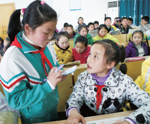 为拓展学生的知识面,东至县实验小学在3—5年级各班级成立了读报兴趣小组,近期又召开《安徽青年报》学生记者培训会,进一步提高学生们的实践能力。图为学生记者们在老师的指导下,开展现场模拟采访活动。 □江水红/摄