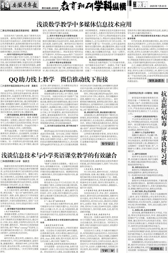 面对疫情,教师需教育学生不传谣、不信谣,帮学生科普相关知识,科学、理性地看待疫情的产生与传播。如遇到难以应对的消极情绪,建议及时向专业机构进行求助。同时引导学生转移注意力,积极参与到家务劳动中,培养学生的劳动意识和动手能力。